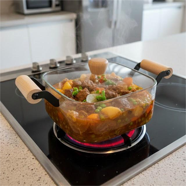 Olla de Borosilicato Modelo (3.5L) 🍜 🌡️ ✨: Especialmente diseñada con mayor altura para cocinar caldos y sopas sin riesgo de que se desborden. El vidrio de alta resistencia asegura que el calor se distribuya uniformemente para una cocción perfecta en cada receta.